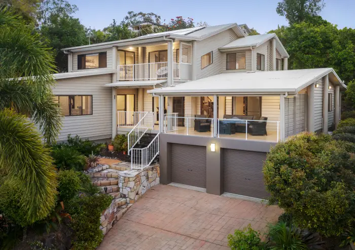 Perched high in one of Buderim’s most tightly held pockets, this expansive multi-level home captures sweeping 180° coastal views from a quiet, leafy cul-de-sac.