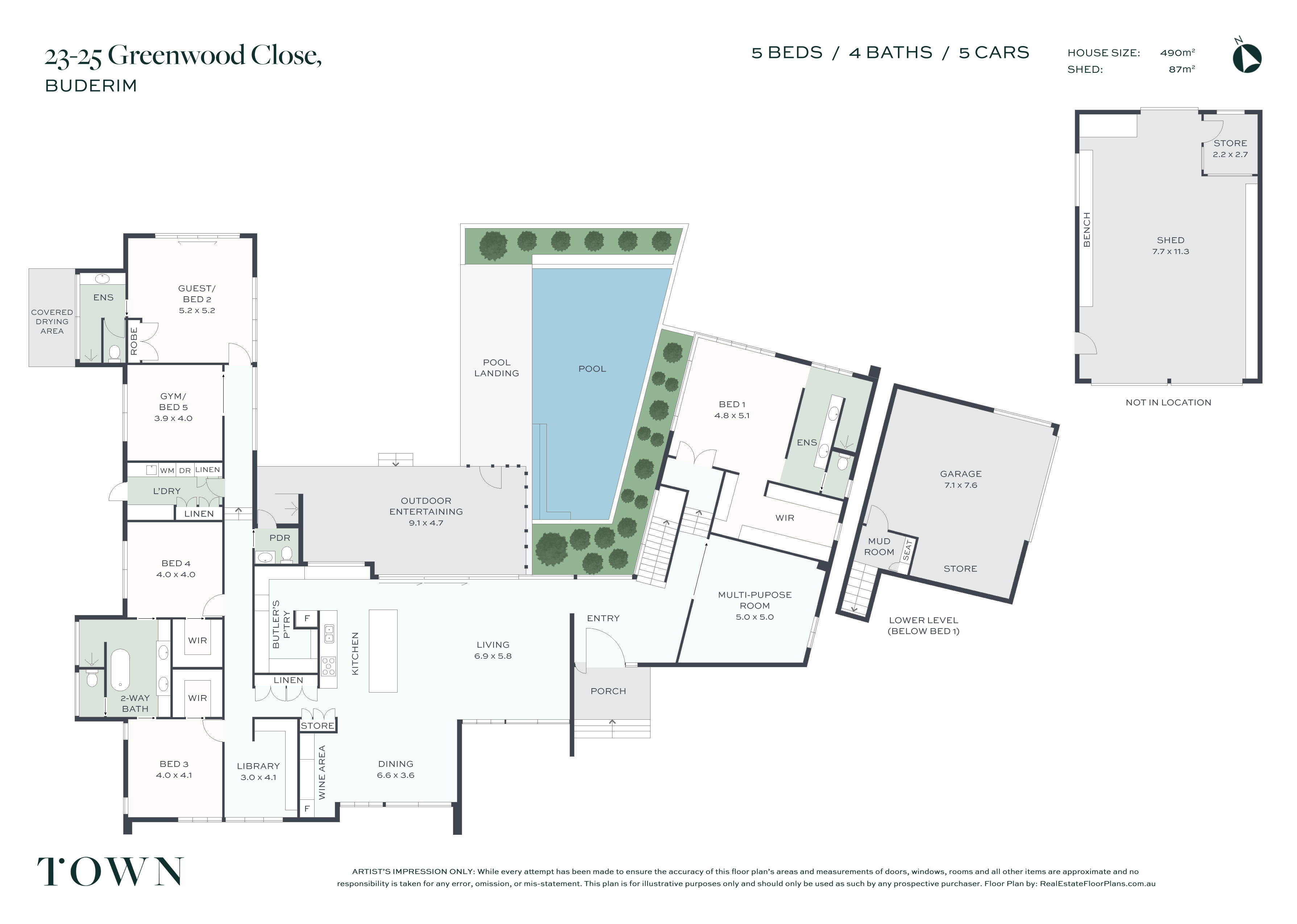 5 Beds 4 Baths 5 Cars Pool Study 5,454 m2