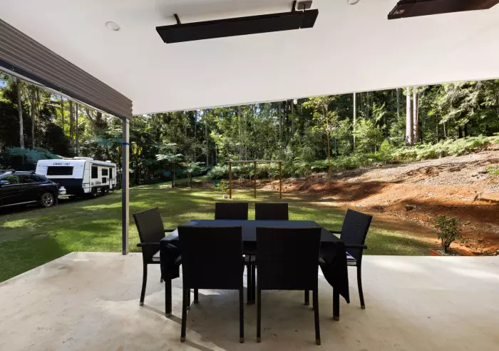 - Covered alfresco with strip heaters and native bush outlook