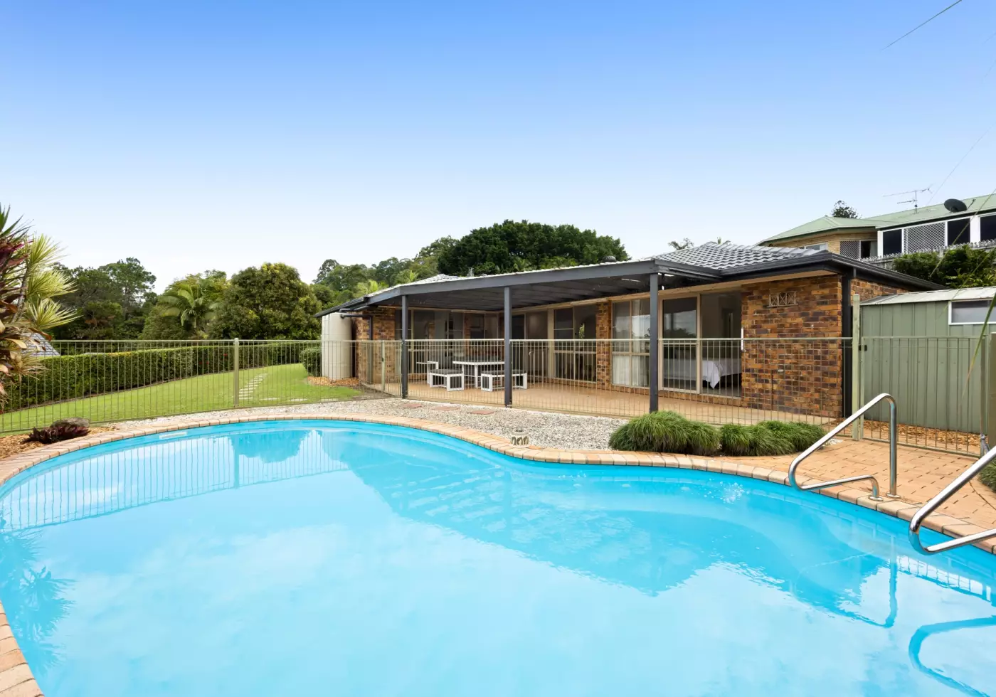 - Large covered alfresco overlooking the pool and tree-lined backdrop