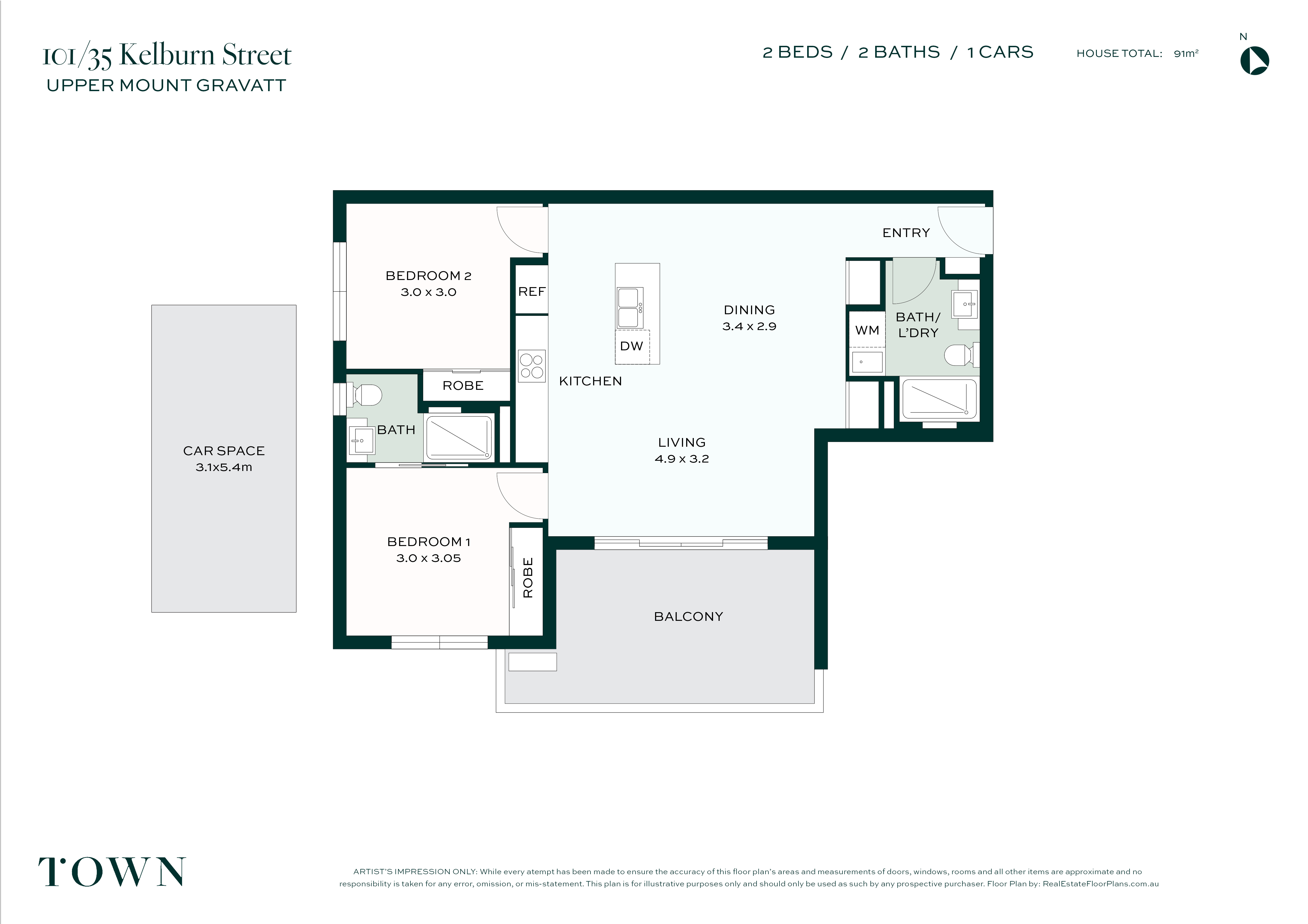 - Second bathroom with concealed laundry (space for washer/dryer)