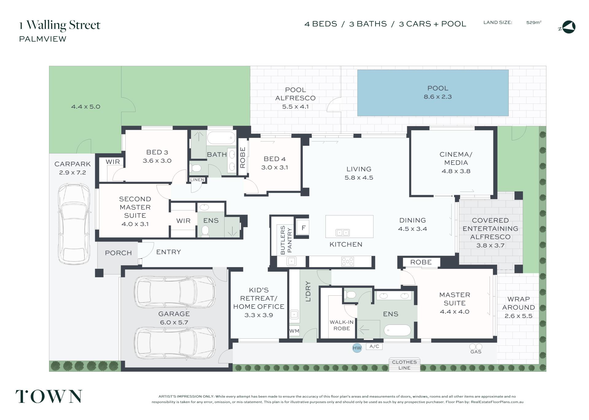 The Sof & Chris team at TOWN proudly present 1 Walling Street, Palmview to market: this stunning Plantation Homes built custom-designed residence with elegant bespoke interiors, offers expansive single level living suitable for all ages; on a 529m2 corner block, one of Harmony’s largest, with only one direct neighbour.