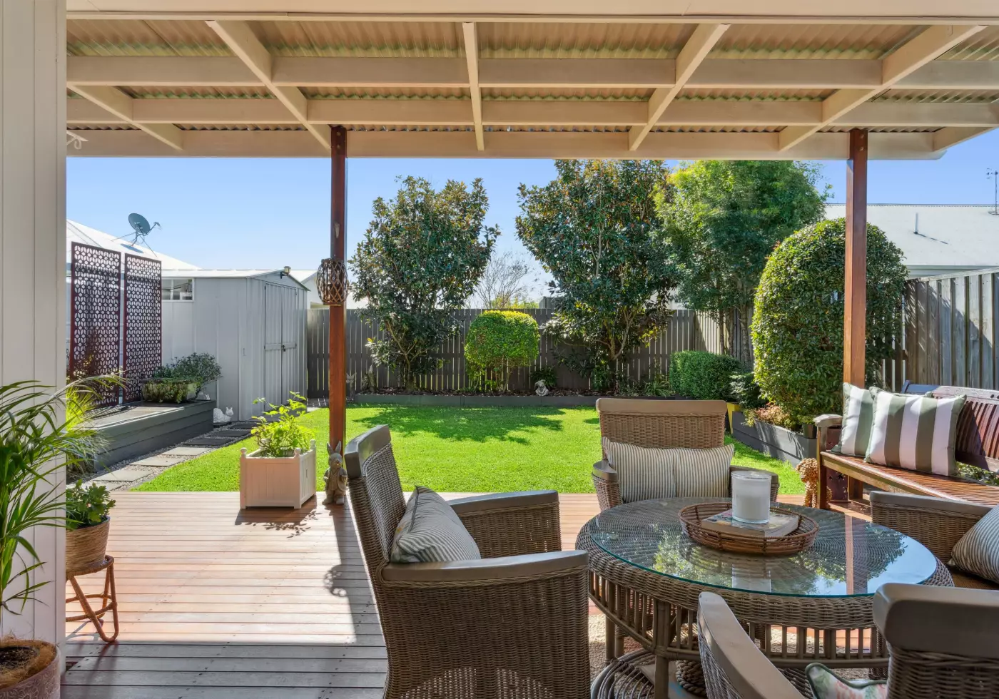 Across approximately 141 square metres, the home comprises of three bedrooms, two bathrooms, built-in study nook, two separate living areas, penisisla kitchen, ultra-private north-east facing covered patio, separate laundry with external access, and single lock up garage.