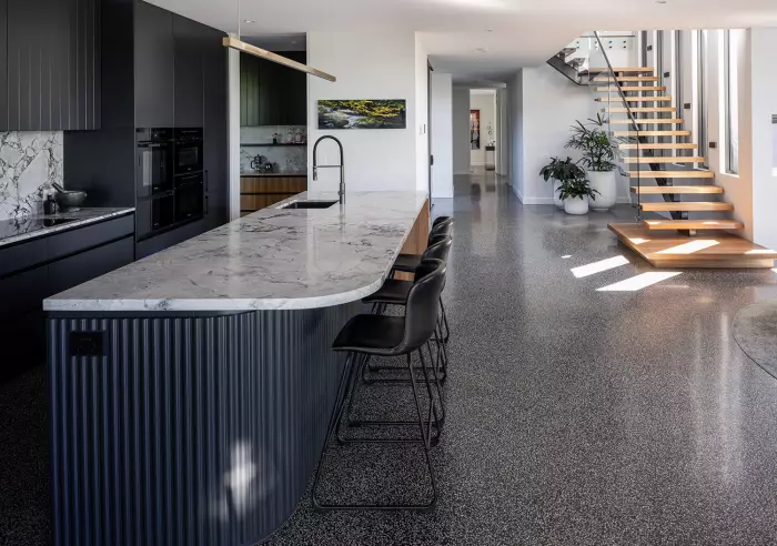 Throughout the home, high-end Pangaea polished concrete and Blackbutt timber floors strike the perfect balance between bold architectural style and natural warmth. Whether it’s gathering in the expansive living areas, retreating to private sanctuaries, or taking in sweeping views from every angle, this is a residence designed to impress at every turn.