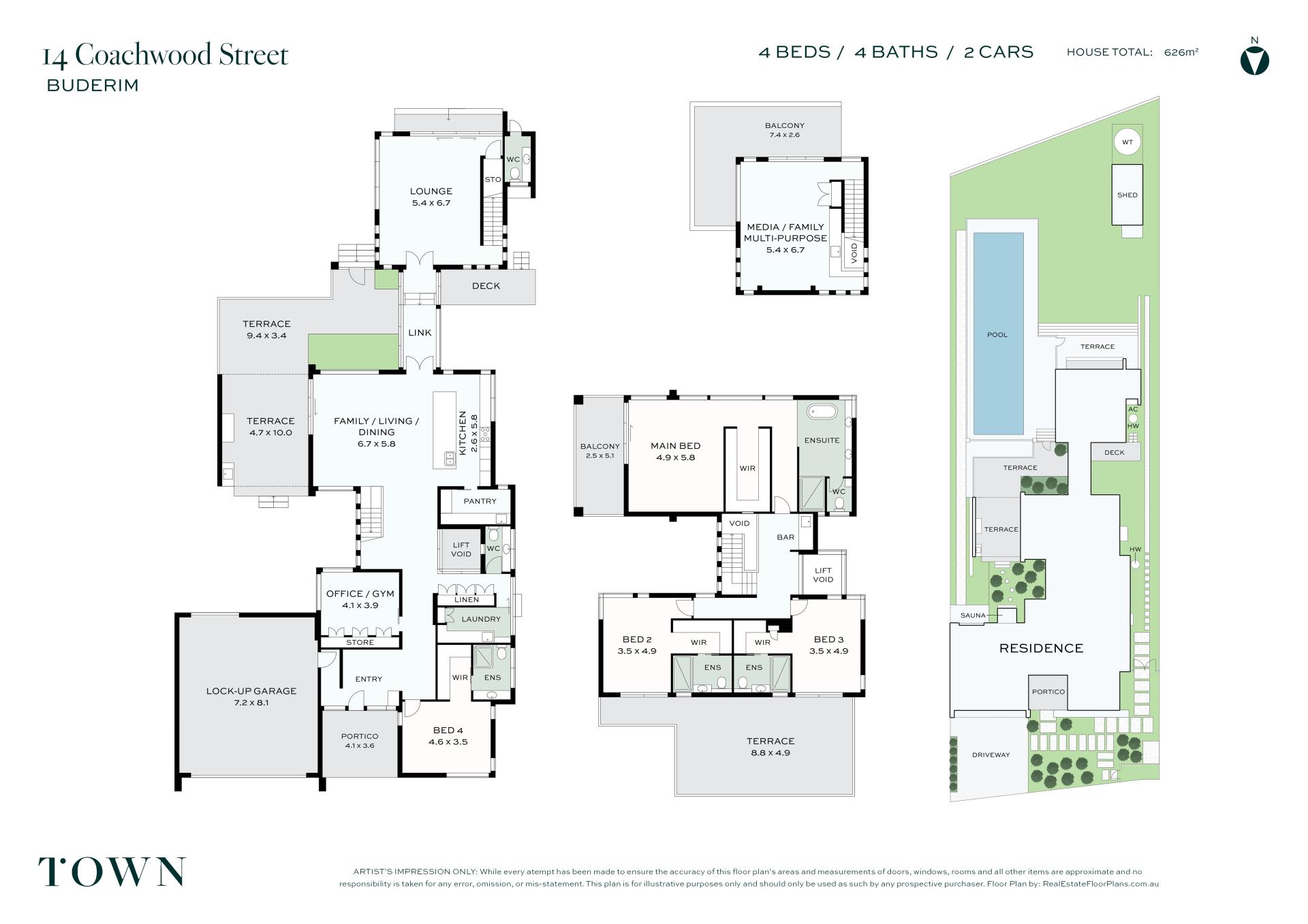 4 Beds 4 Baths 2 Cars Pool Study 1,304 m2