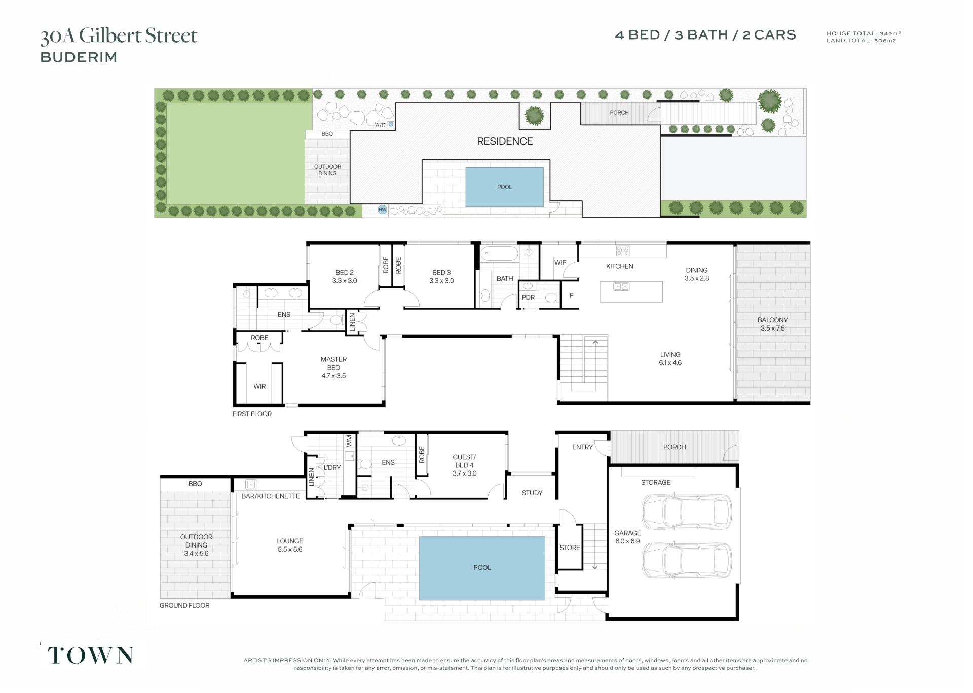- 349m2 across two light-filled levels: 4 bedrooms, 3.5 bathrooms