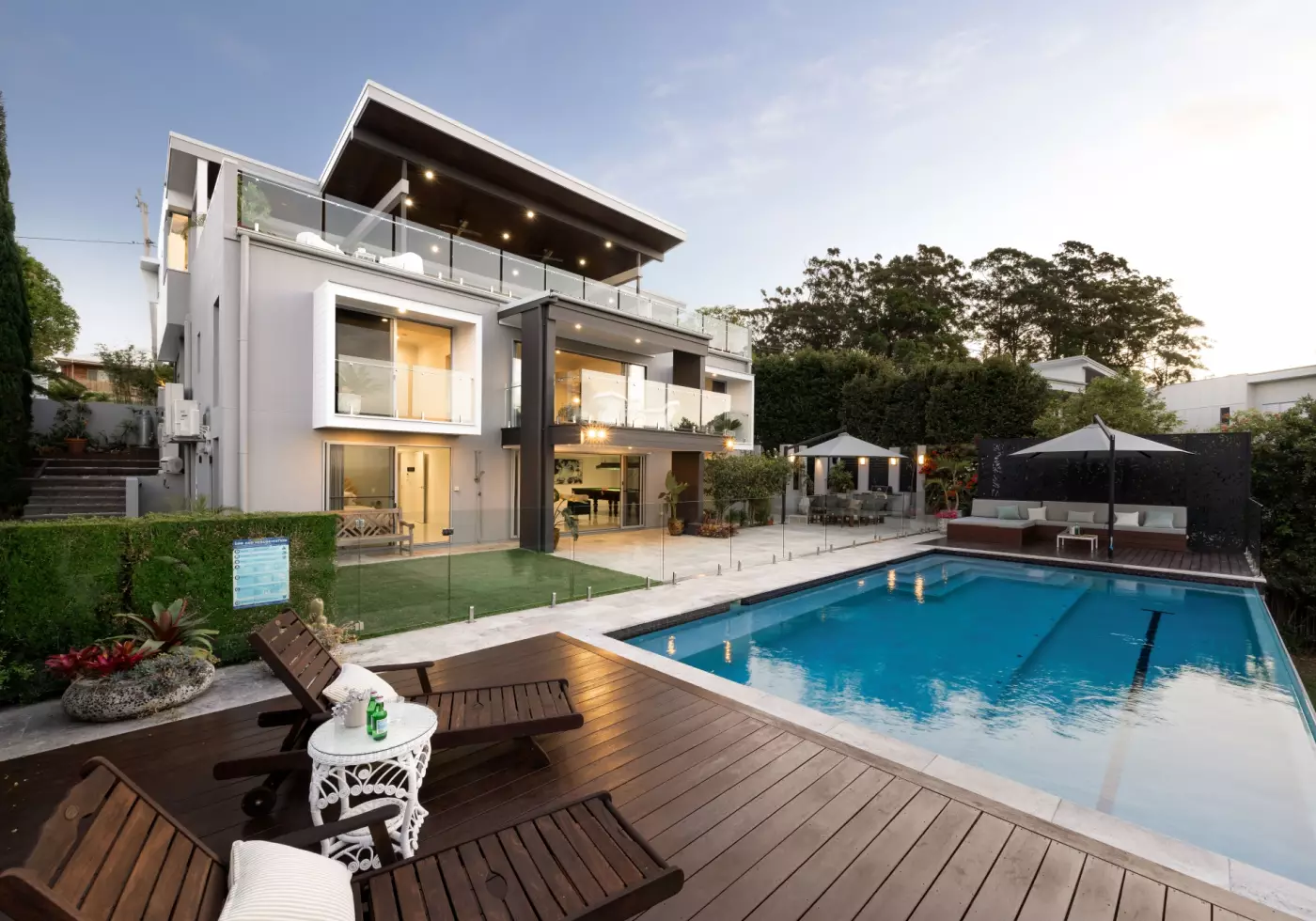 The landscaped gardens are low maintenance with a self-watering vegetable garden, a Gro-Wall vertical garden, and abundant onsite parking and turning space for visitors. There is grassy lawn space for children and pets to play safely and securely outdoors, when you can entice them away from the cinema or out of the pool!