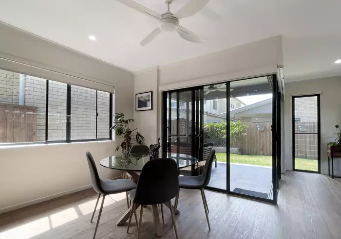 Comprising three bedrooms, two bathrooms, light-filled galley kitchen, expansive open plan living and dining flowing out to north-east facing covered patio, and single lock-up garage with laundry facilities; it cleverly maximises space whilst minimising maintenance inside and out.