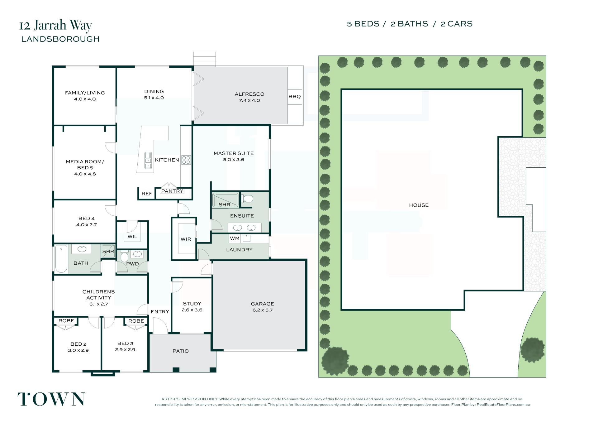 Multiple living areas include a dedicated media room, a study near the front entrance ideal for a home office or business, and a separate guest or children’s retreat complete with a play area — providing clever separation of space and privacy for all.