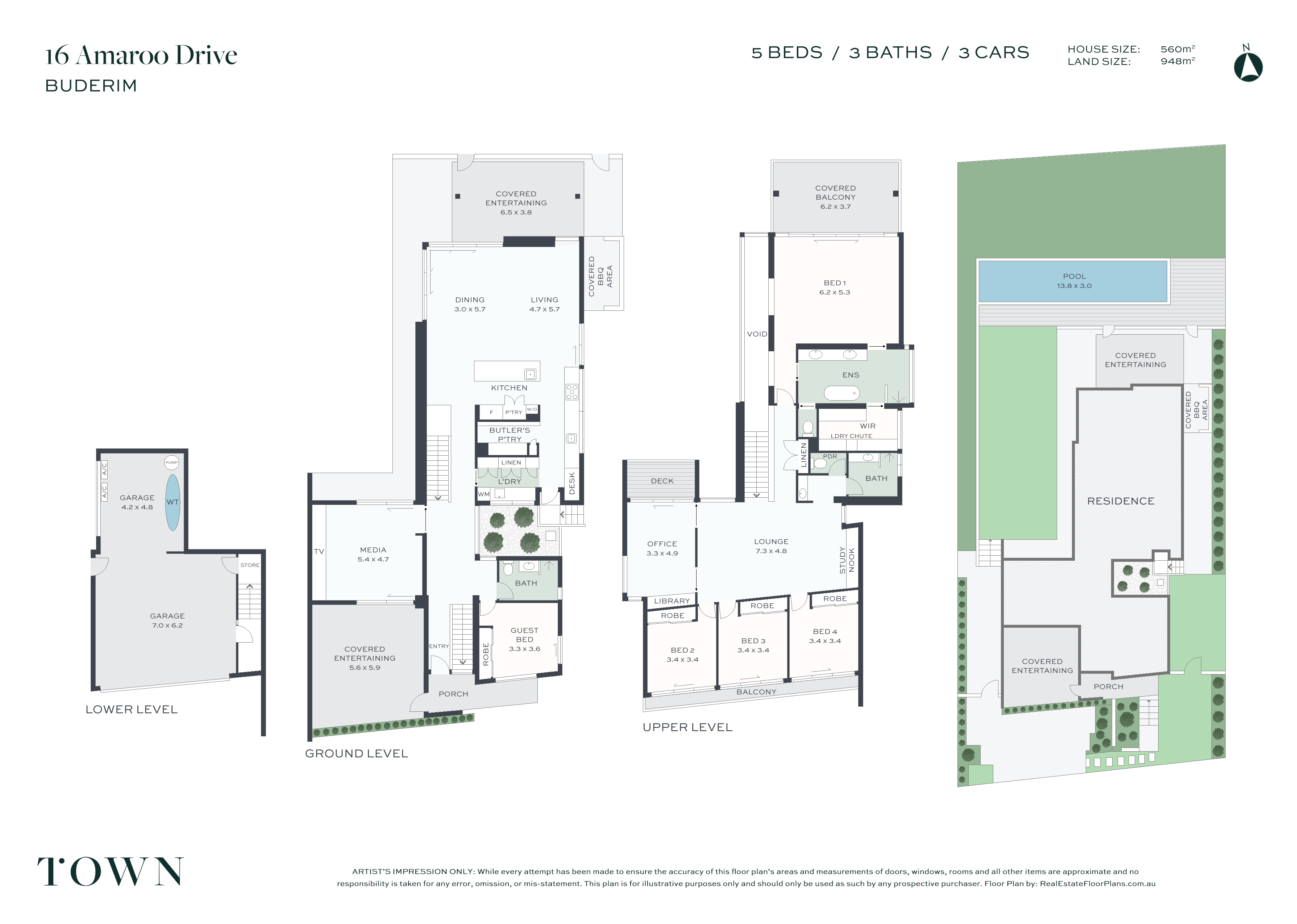 - Expansive 560m2 residence on 948m2 block, perfect northern aspect