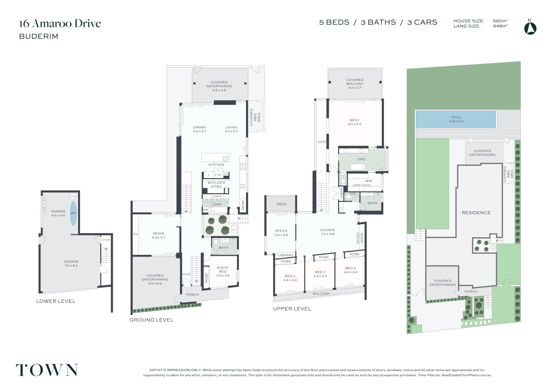 5 Beds 3 Baths 3 Cars Pool Study 948 m2