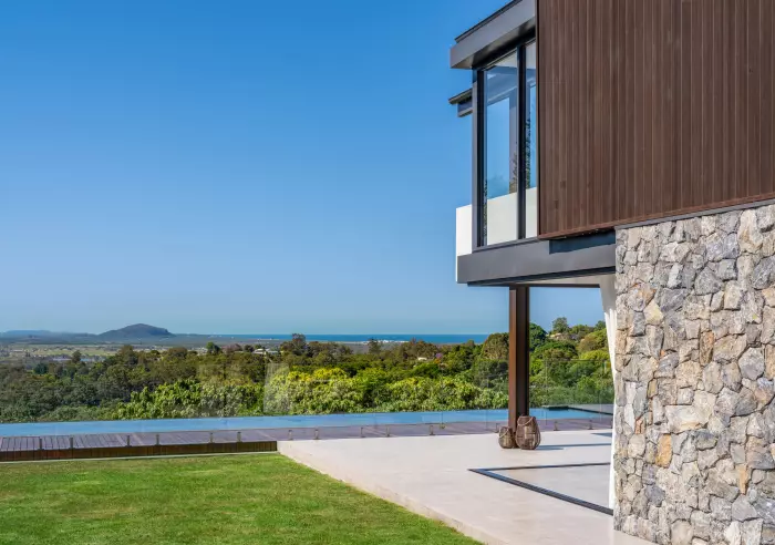 Everything about this home is impressive from its suspended concrete slab construction with cantilevered doors and staircase, seamless indoor/outdoor integration, through to its inspired use of materials – a fusion of stonework, timber, and concrete to create understated sophistication and elegance.