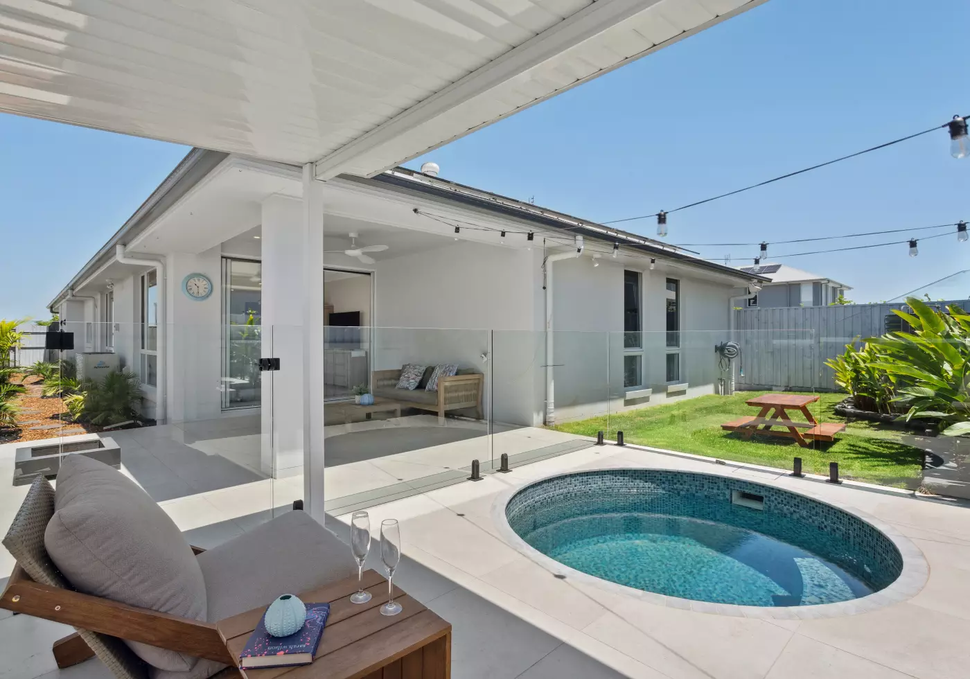 Cleverly designed to maximise natural light and complement its coastal surrounds, the interior is both functional and refined. The open-plan main living area seamlessly integrates the kitchen, dining, and living zones, flowing out to a covered alfresco that overlooks the inviting plunge pool and sundeck — ideal for entertaining or relaxing with friends while the kids splash in the pool.