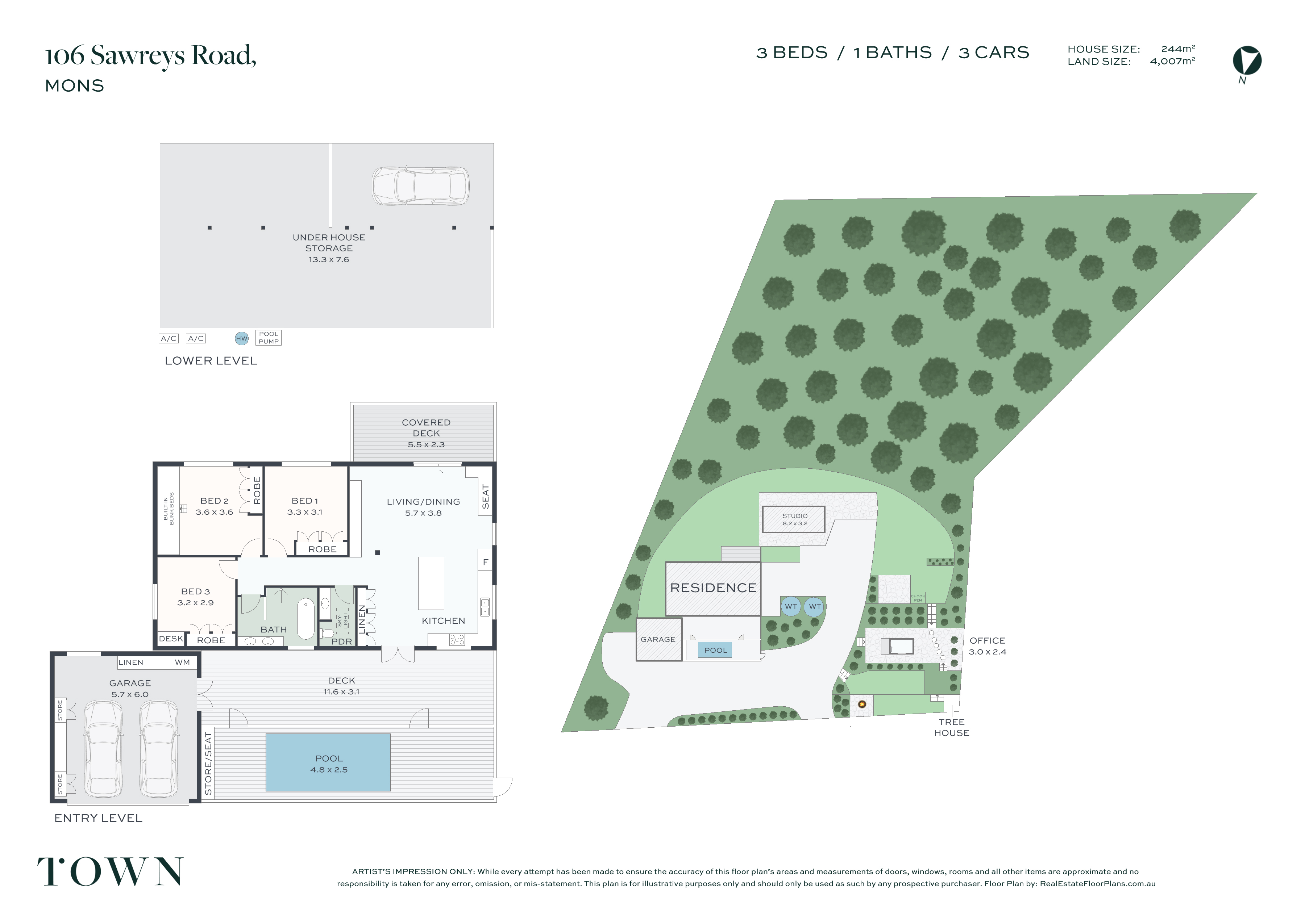 3 Beds 1 Baths 5 Cars Pool Study 4,007 m2