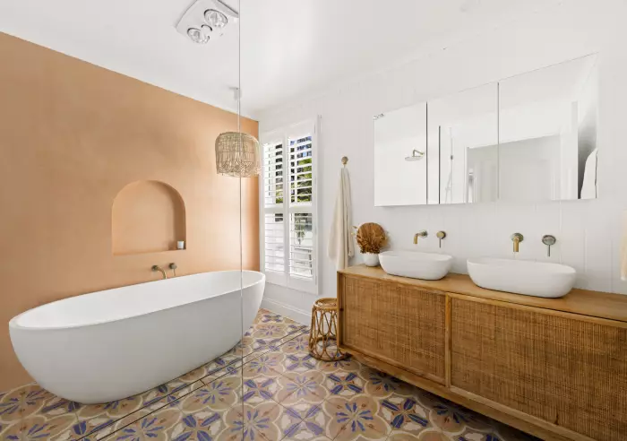- Venetian plaster bathroom feature wall