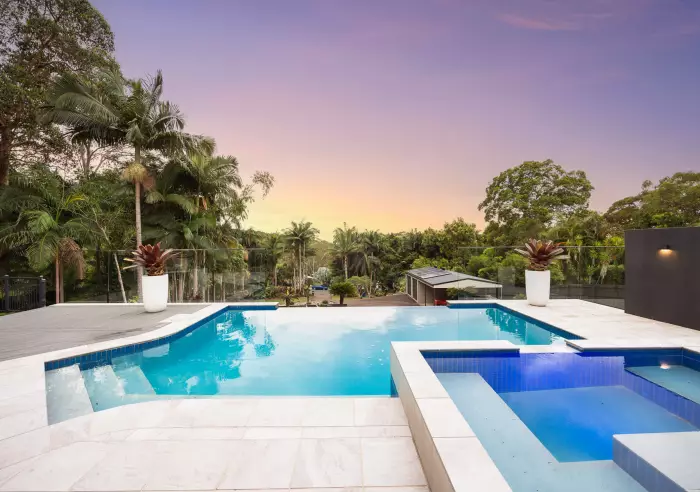 This stunning semi rural hideaway offers all the benefits of country living just minutes from the pristine sands of Coolum Beach. Set on over 5,000m² of lush, landscaped grounds, this private retreat feels like your own resort — complete with an infinity-edge pool, spa, firepit, and basketball court all overlooking a tranquil lagoon.