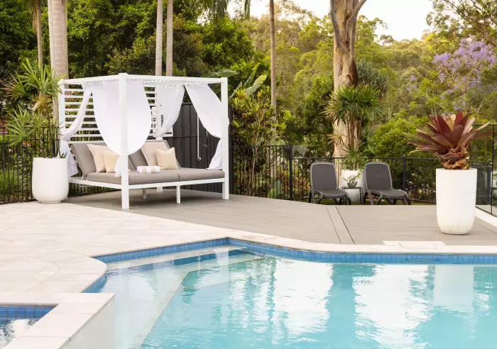 Designed for relaxed outdoor living, the north-east facing alfresco area captures the winter sun and overlooks beautifully terraced gardens with natural stone walls, bridges, and over 100 plant species.