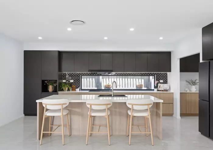 The contemporary kitchen is a culinary showpiece — boasting high-end appliances, sleek timber cabinetry, stone benchtops, butler’s pantry, and thoughtful design touches that elevate daily cooking and entertaining alike. Practical luxury continues downstairs with a separate laundry featuring built-in linen storage, and a double garage for secure, easy living.
