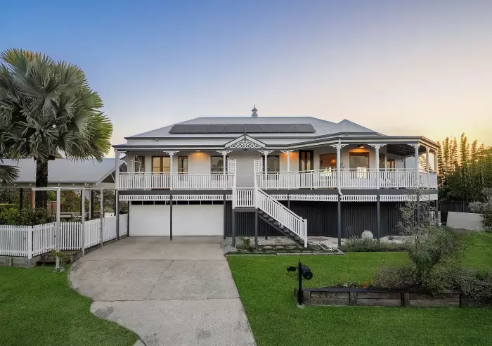 Modern luxuries blend seamlessly with the home’s character, including reverse-cycle air conditioning, a 6.6kW solar power system, 53,000L of rainwater storage, a double garage with workshop, and extensive under-house storage.