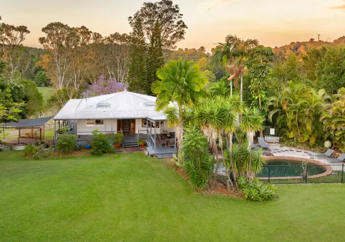 Set on 1.63 acres on the border of Eerwah Vale and Belli Park, this classic homestead captures the essence of Queensland county living to perfection. Blending nostalgia, comfort and self-sufficiency with sweeping views across the rolling hills of the hinterland.
