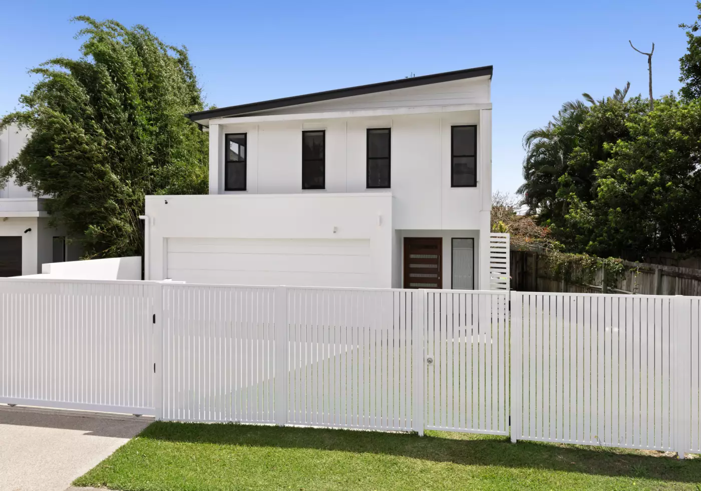 A striking street presence with clean white façade and electric gated entry sets the tone, while a wide front porch welcomes you inside to a light-filled open-plan living, kitchen and dining space. Anchoring the home is a contemporary kitchen featuring stone benchtops, Bosch cooktop, Haier oven, island bench, and abundant cabinetry — ideal for effortless everyday living and entertaining. Timber cabinetry in the dedicated laundry space adds a touch of warmth and sophistication, while split air-conditioning downstairs and ducted upstairs ensures blissful comfort year-round.