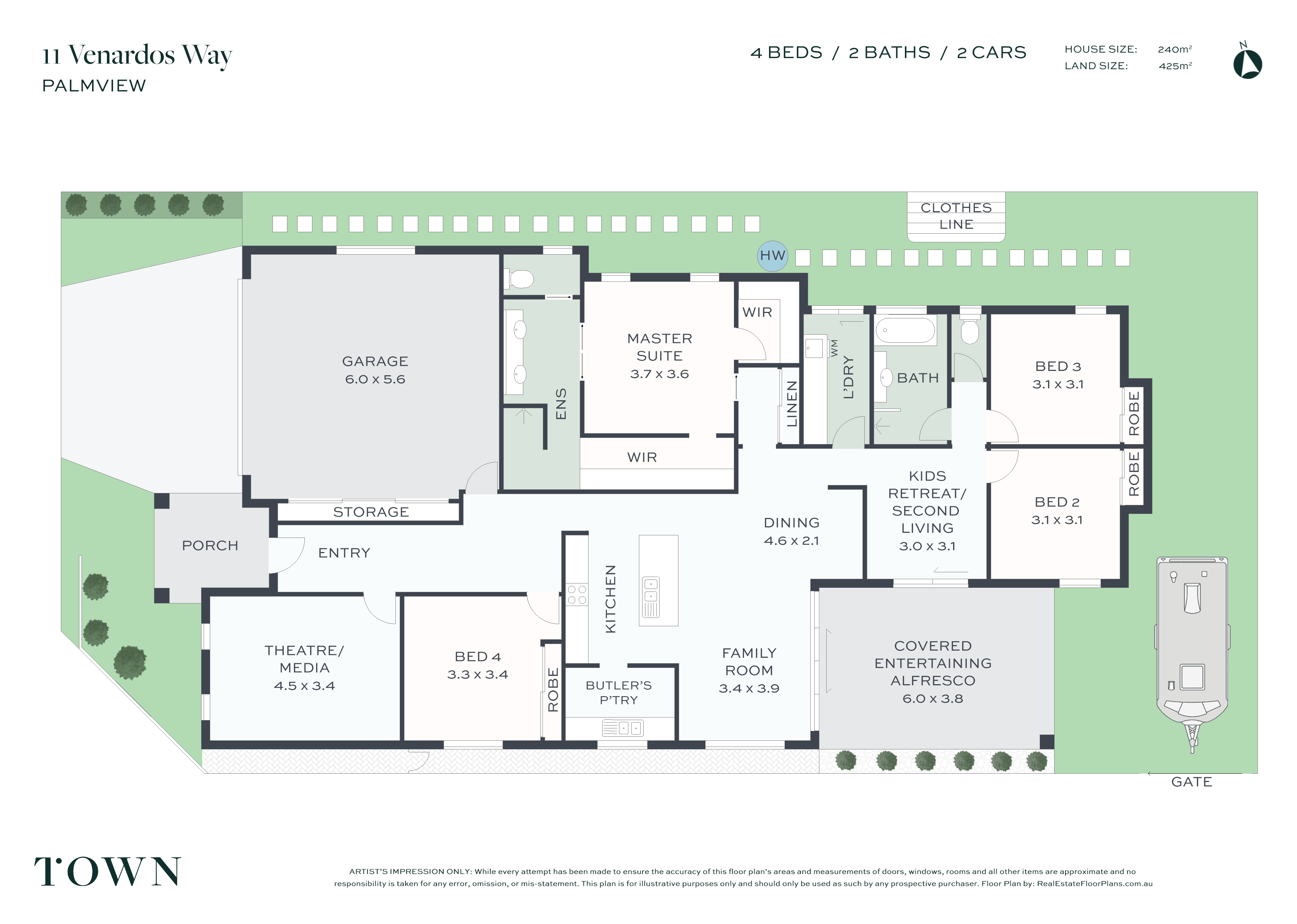 4 Beds 2 Baths 2 Cars 425 m2