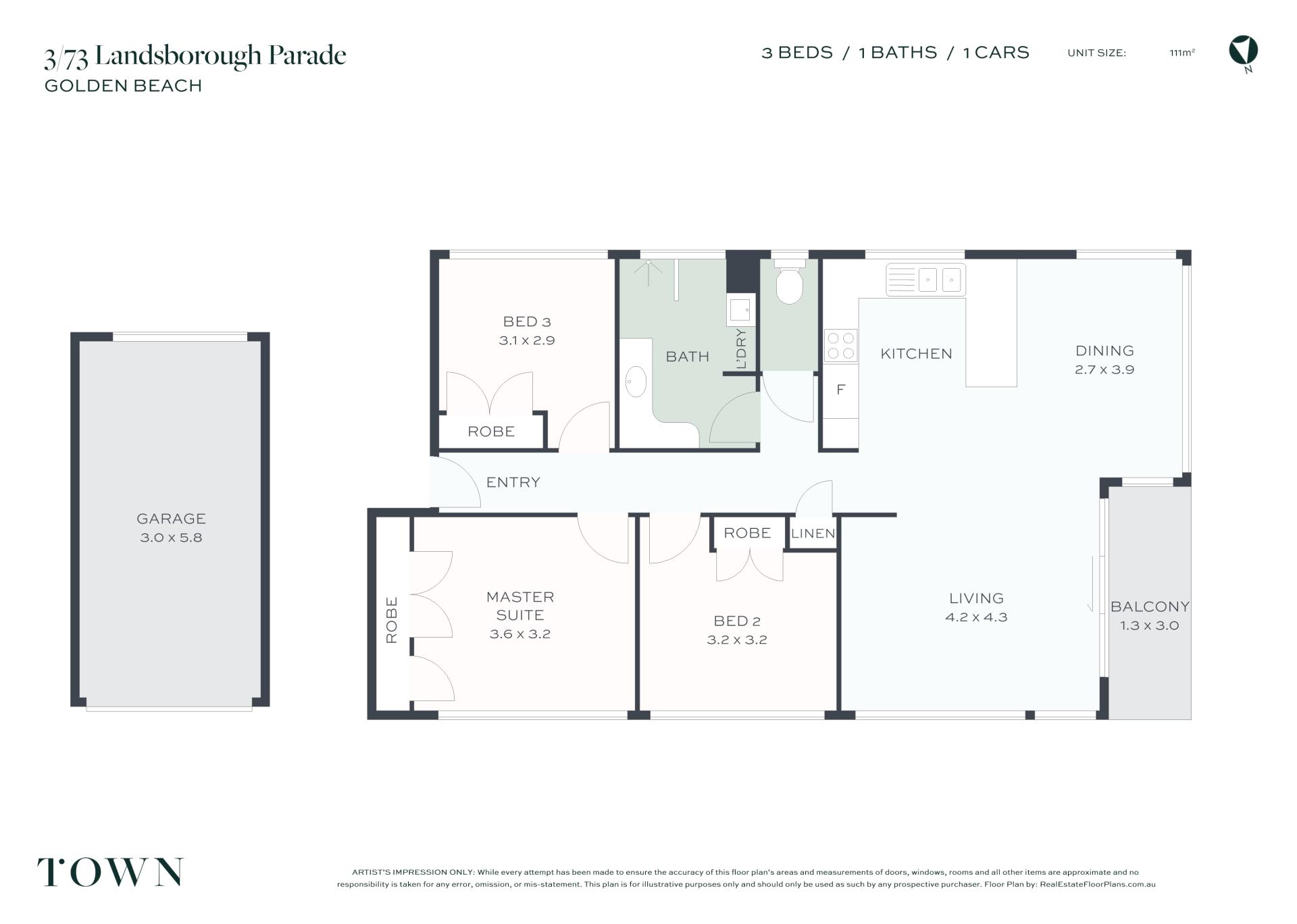 3 Beds 1 Baths 1 Cars