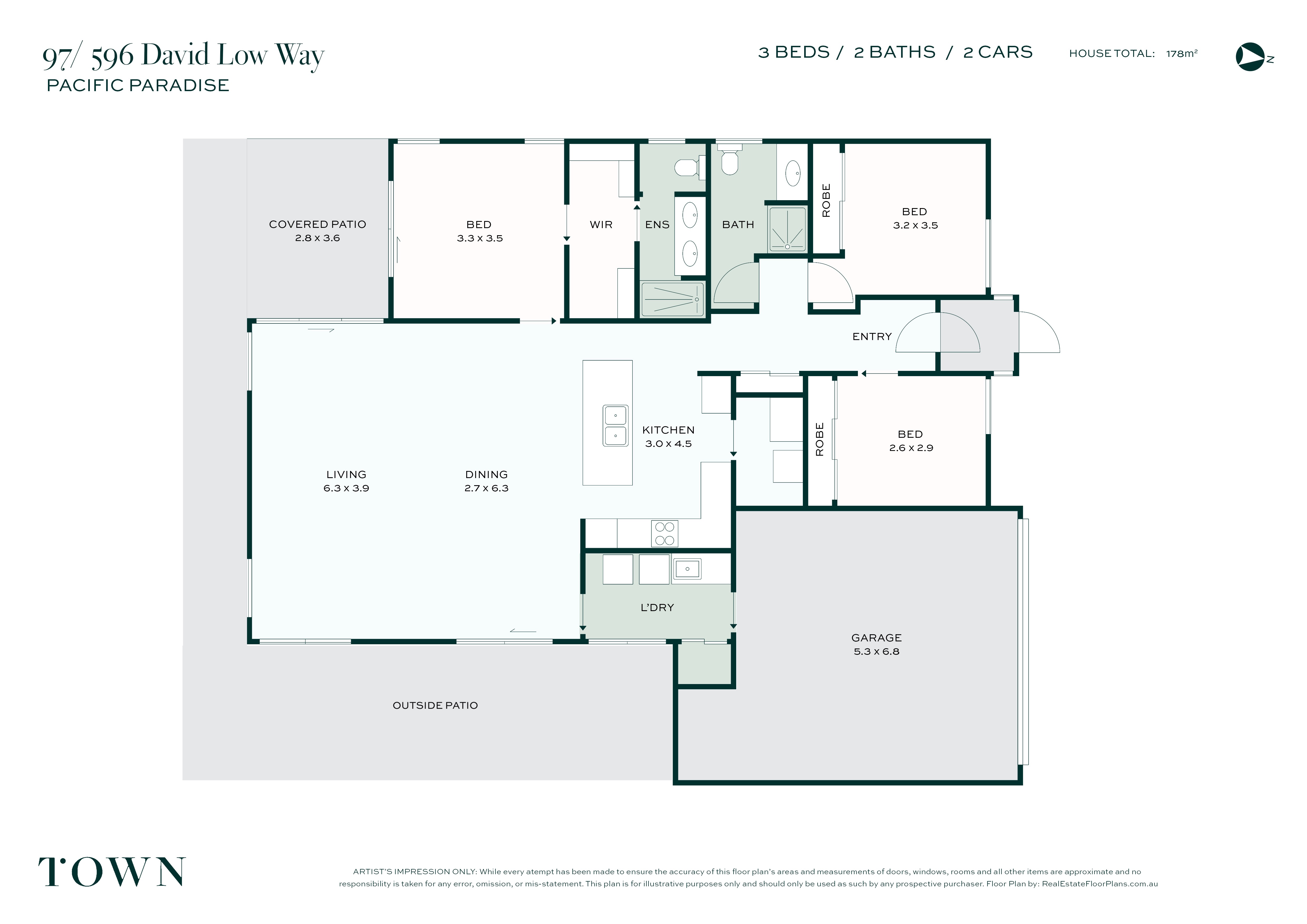 3 Beds 2 Baths 2 Cars Pool