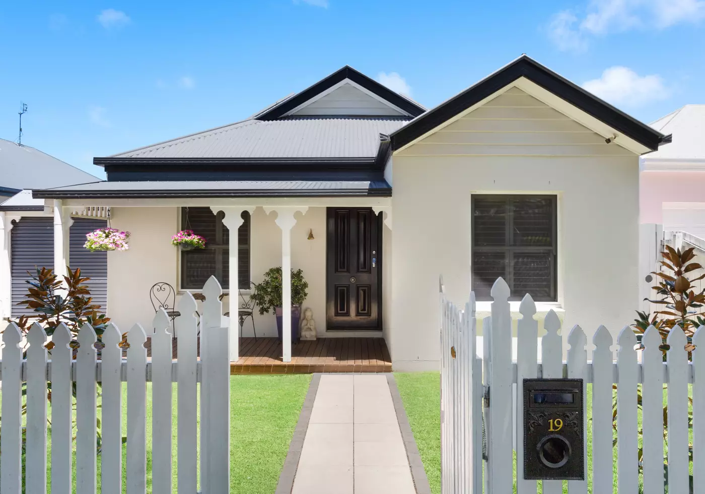 - Charming cottage-style home with white picket fence and leafy street presence.