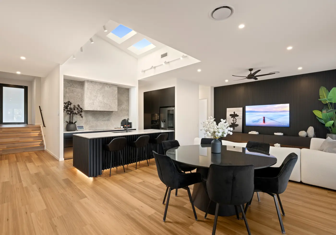 - Ducted zoned air-conditioning with AirTouch controller, ceiling fans