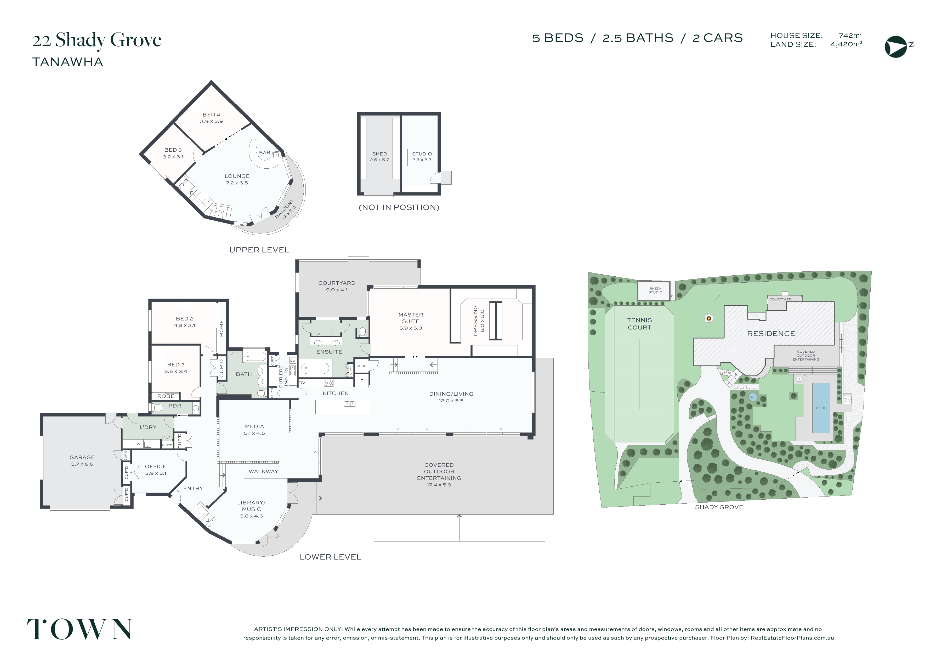 5 Beds 2 Baths 2 Cars Pool Study 4,420 m2