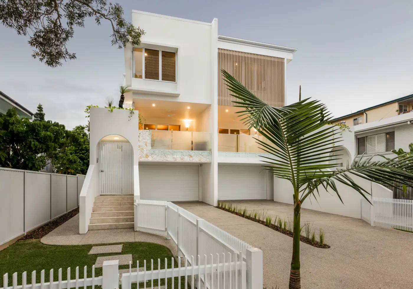 Set within a brand new boutique complex in the heart of Cotton Tree, this exceptional duplex residence delivers a rare combination of architectural beauty, luxury finishes and an unbeatable Sunshine Coast location. With its striking street presence, arched feature stairway and coastal inspired design that offers a subtle nod to classic 1950’s seaside architecture, the home immediately sets itself apart, blending timeless character with crisp, modern elegance across three impressive levels.