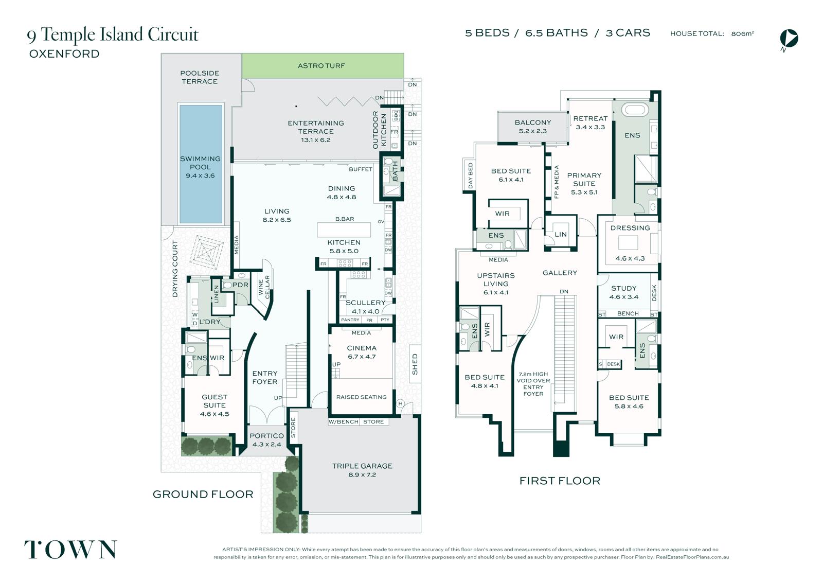 - 806m² solid concrete home with post-tension slab and bespoke finishes