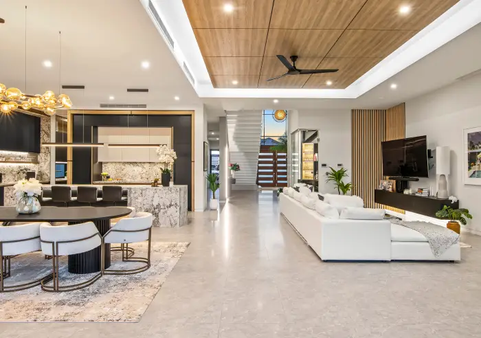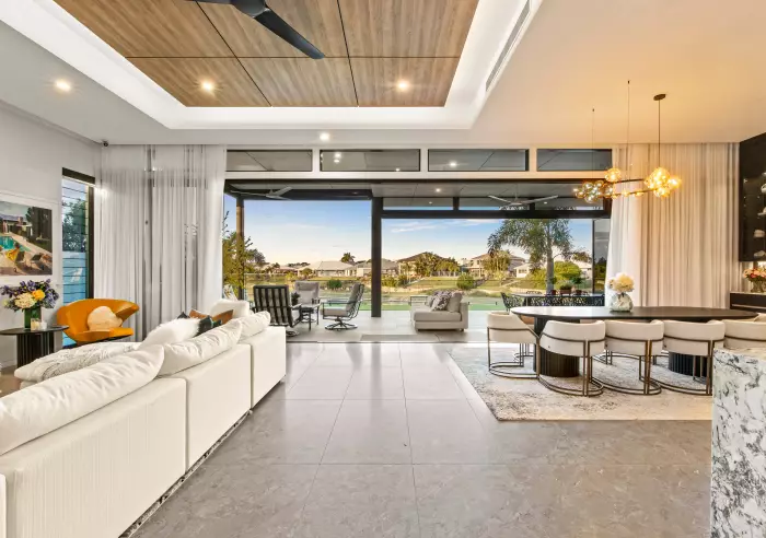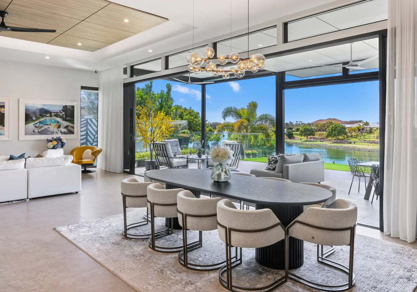 Commanding a north-facing position on Regatta Waters Lake, this architecturally masterful residence redefines prestige waterfront living. Designed on a grand scale without sacrificing warmth and liveability, it is a home where craftsmanship, luxury, and family life coexist in harmony.