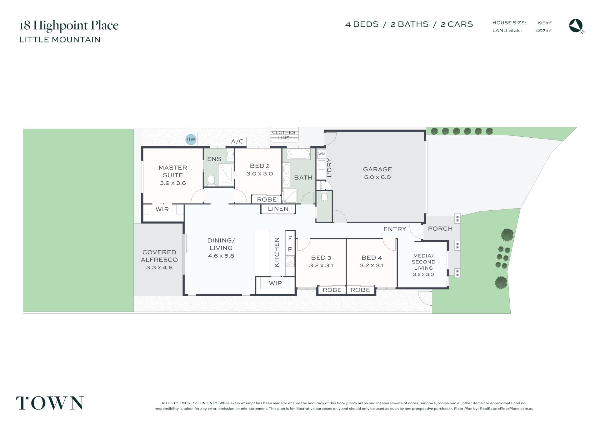 4 Beds 2 Baths 2 Cars 407 m2