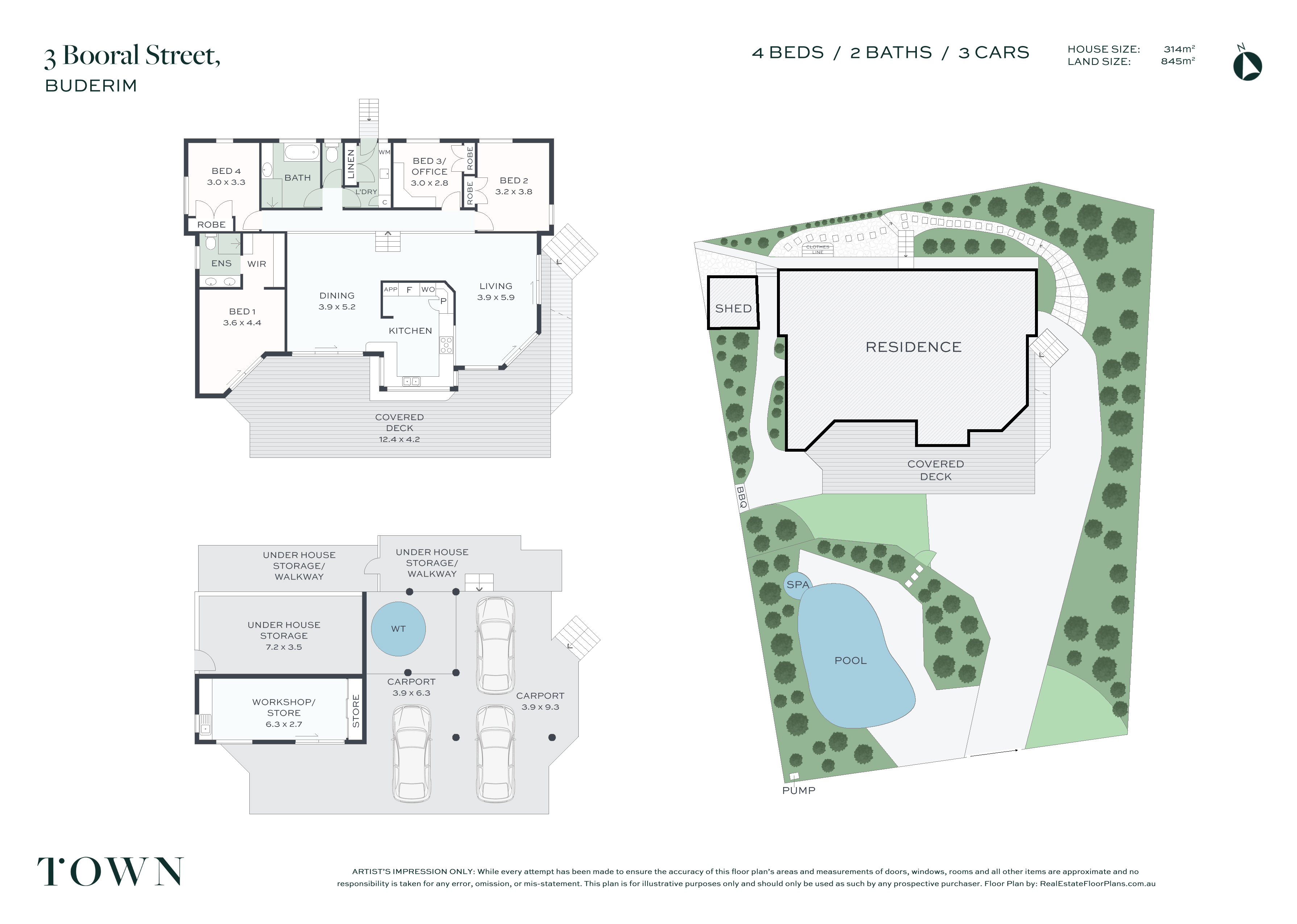 4 Beds 2 Baths 3 Cars Study 845 m2