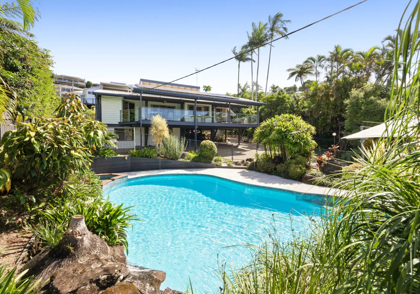 - 70,000-litre saltwater swimming pool framed by established tropical gardens