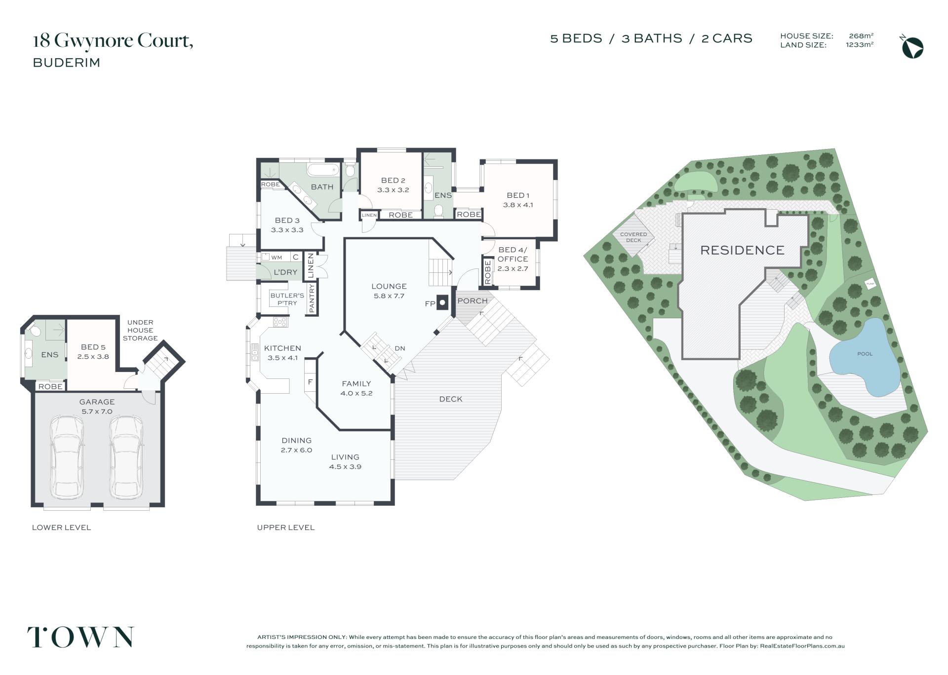 5 Beds 3 Baths 2 Cars Pool Study 1,233 m2