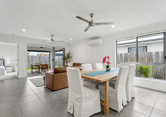 Embracing relaxed coastal living and everyday convenience, this contemporary family home is positioned within the thriving Nirimba community, a master-planned enclave entwined with parks, nature reserves, cafés and schools. Pristine beaches lie only minutes away, while Brisbane sits just an hour to the south, offering a considered blend of coastal ease and connectivity.