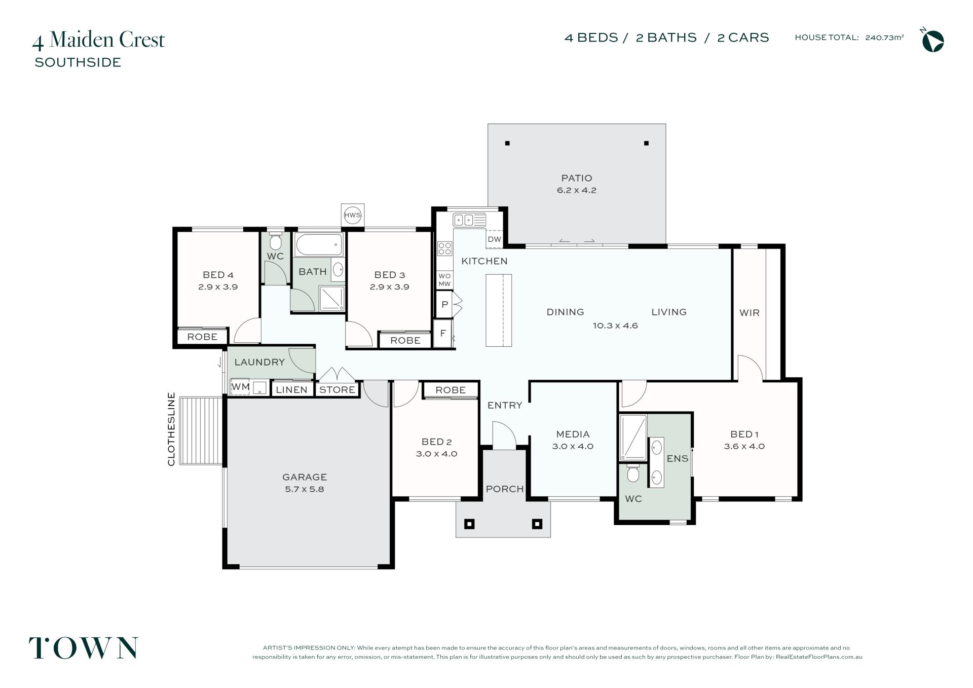 Four generous bedrooms are complemented by a dedicated media room. The large master suite includes a walk-in robe and an ensuite with twin basins and an oversized shower. A spacious kitchen is complete with 20mm stone bench tops and a 900 mm electric cooktop, and the separate laundry has built-in cabinetry and direct external access to the clothesline. AC and fans keep things comfortable year-round, and solar power stops the bills from overheating!