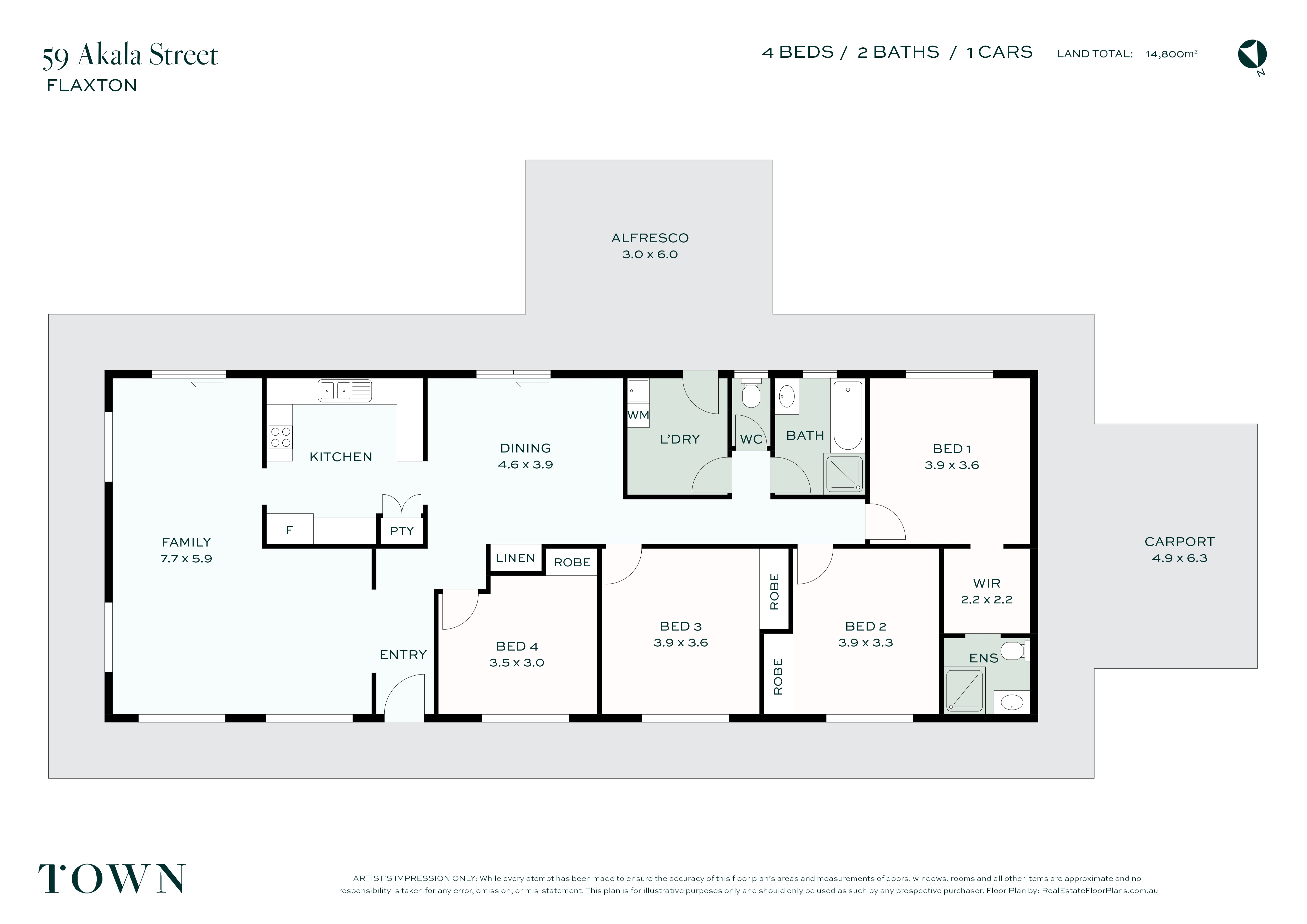 - 4 covered car spaces