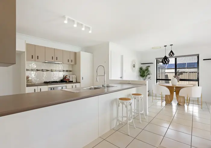 Designed for practical family flow, the open-plan heart connects easily to the alfresco and yard, with a gas cooktop in the kitchen and modern fixtures throughout. Four bedrooms, a well-appointed bathroom and two-car accommodation round out a low-maintenance package that’s private, secure and move-in ready.