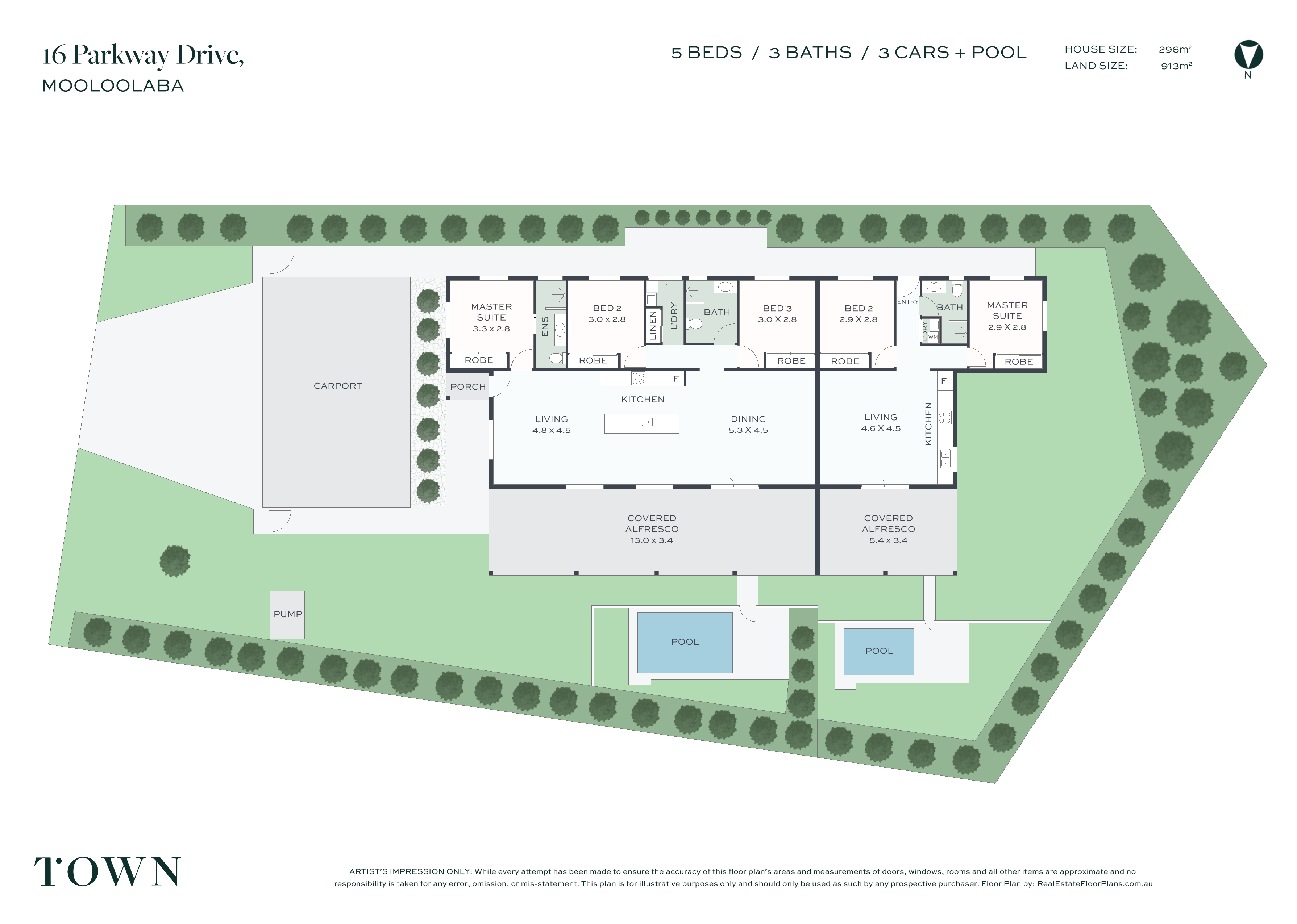 5 Beds 3 Baths 3 Cars Pool 913 m2