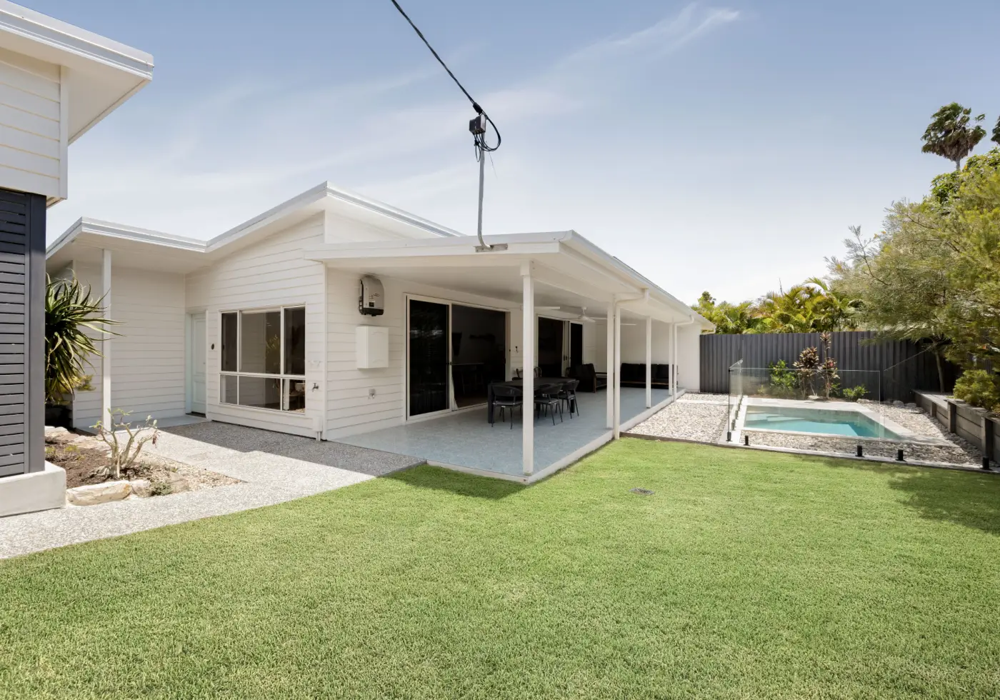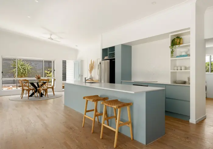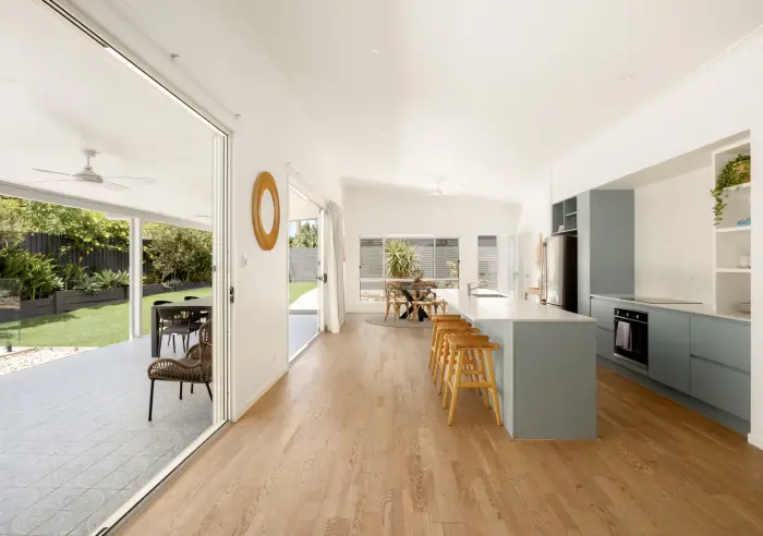 - Stylish coastal interiors: hybrid flooring, high ceilings, split system A/C, fans