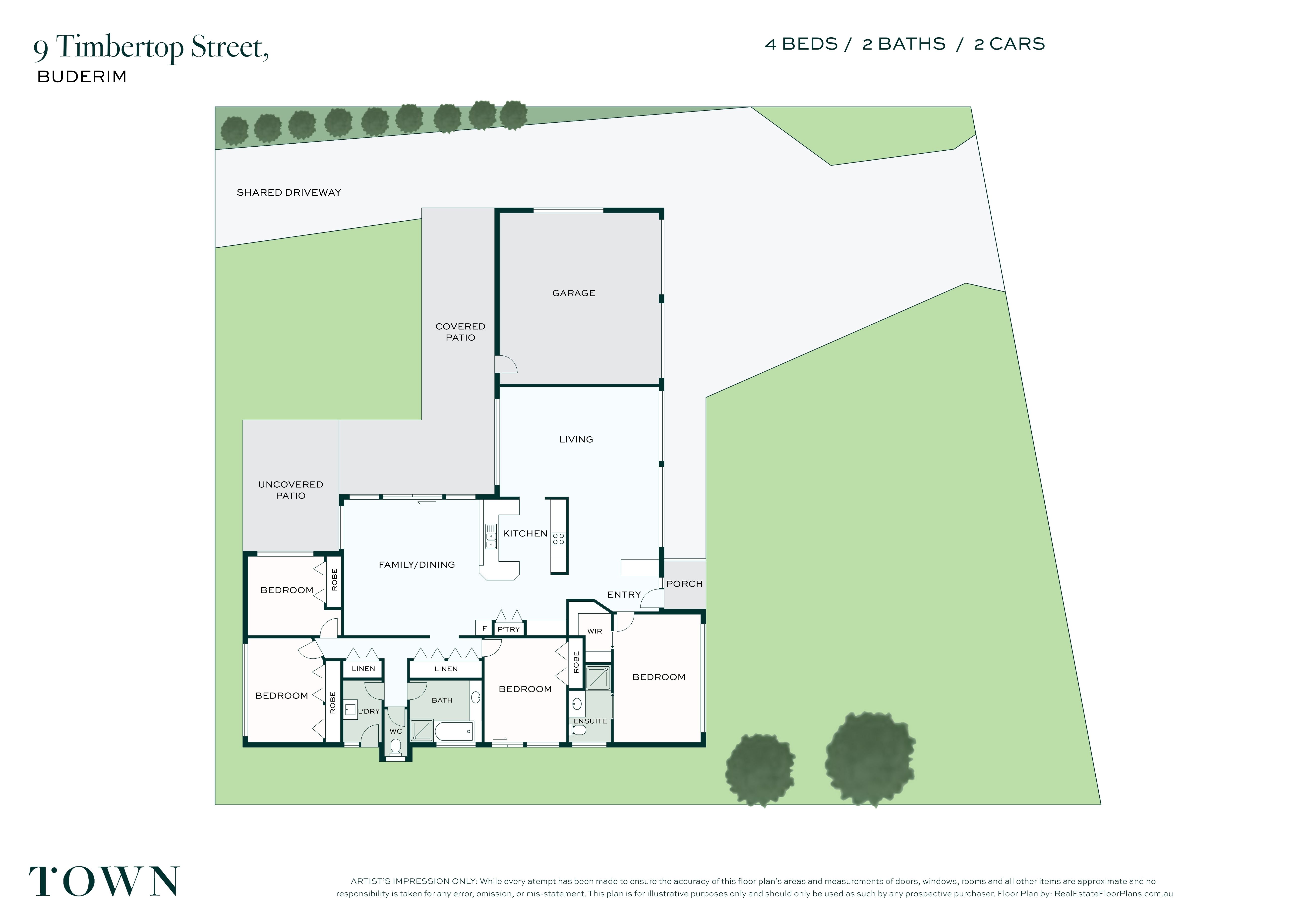 - 4 bedrooms, 2 bathrooms, 2-car accommodation