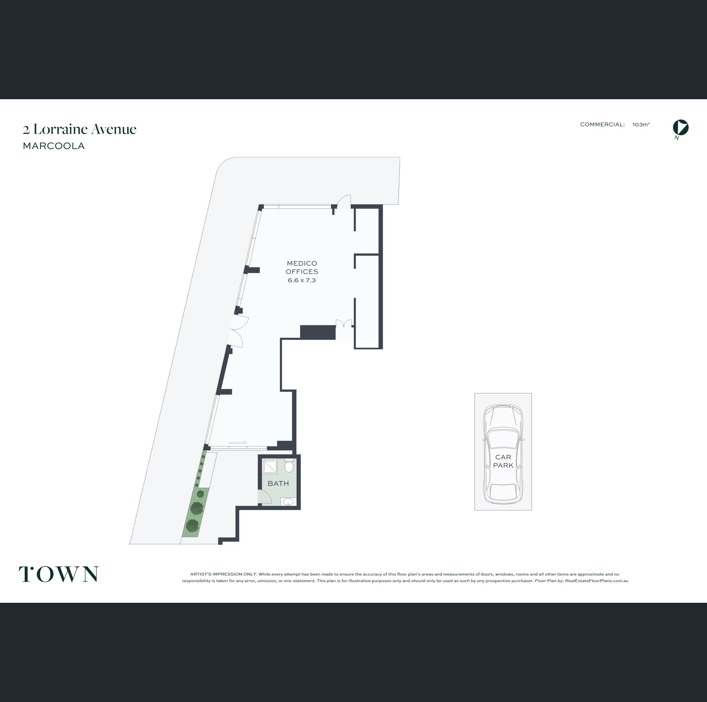 The ground level is currently utilised as a medical suites with internal and external seating areas, single carport and turntable for delivery vehicles; this premises is currently returning $80,000 per annum. There is also a lobby with a lift to access the dual-level residence above.