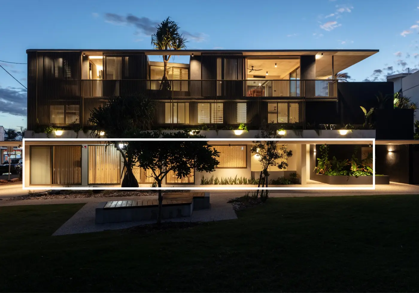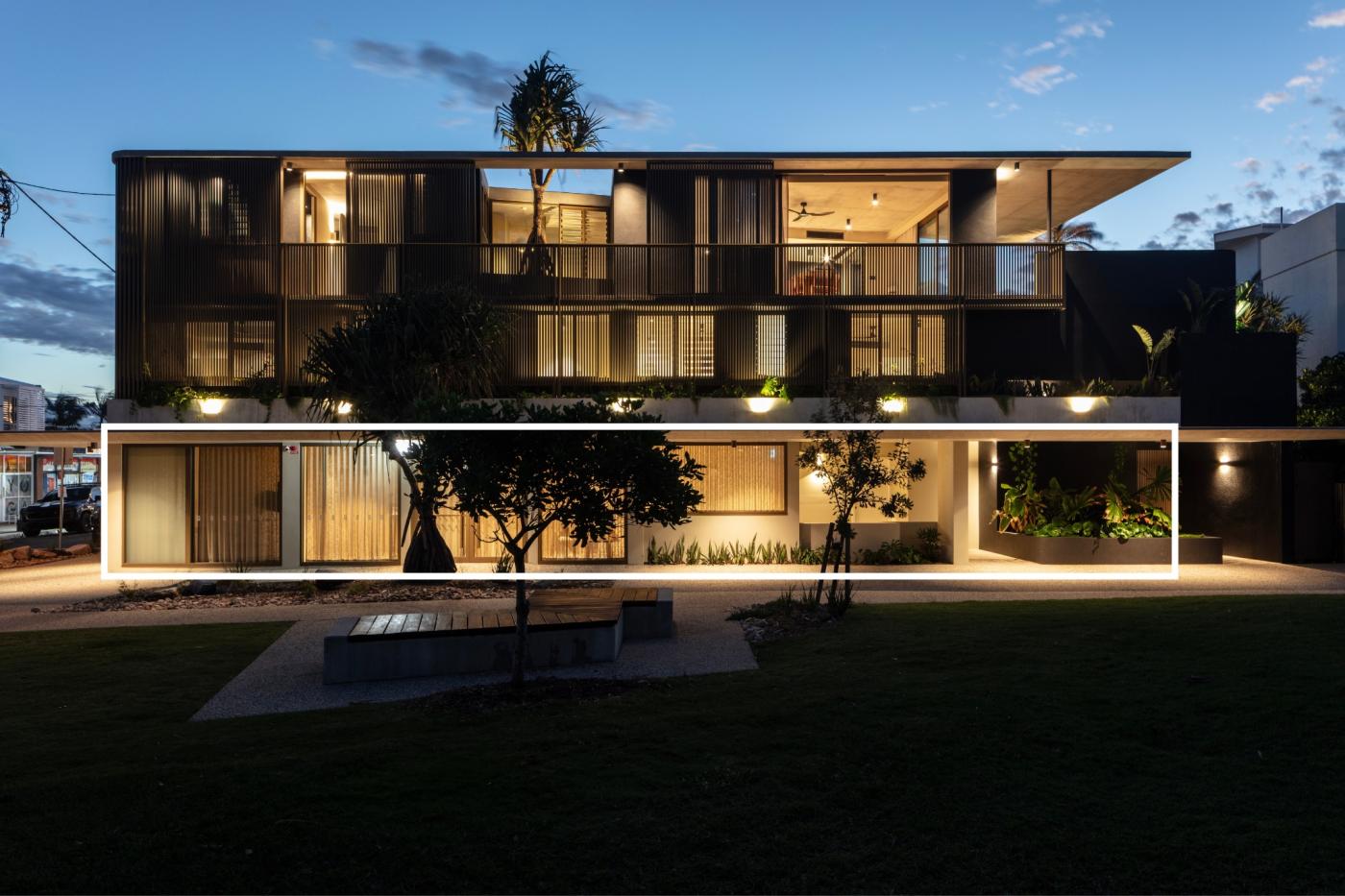 This 2024-built tri-level property, a blend of residential and commercial; designed by COR Architects and built by Cooper Small, offers an inspired blend of liveable coastal luxe with a passive income stream from tenanted premises on ground floor, in a prime beachside location with no roads to cross to surf and sand.