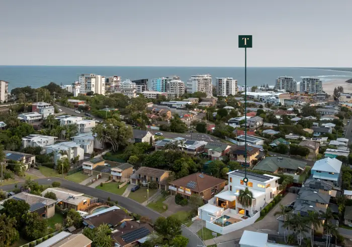 Perfectly positioned on this elevated north facing 774m2 block in a coveted residential neighbourhood in the heart of Caloundra, is this absolutely stunning bespoke tri-level designer residence offering low maintenance coastal living with commercial-grade infrastructure and full-home automation; custom-built in late 2024 it is an impressive residence in every sense.