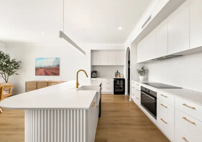 • Designer kitchen with expansive island bench, butler’s pantry and walk in pantry