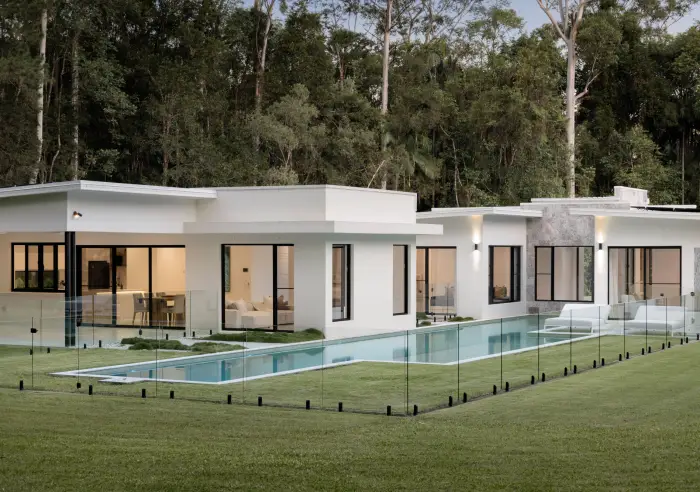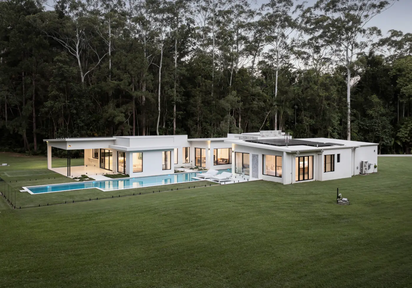 Tucked away at the end of a dress-circle cul-de-sac on an ultra-private, 2.62-hectares framed by lush forest is this light-filled, custom-designed residence offering 367 square metres of luxury living across a single level with a north-facing 25-metre heated magnesium pool a striking centrepiece.
